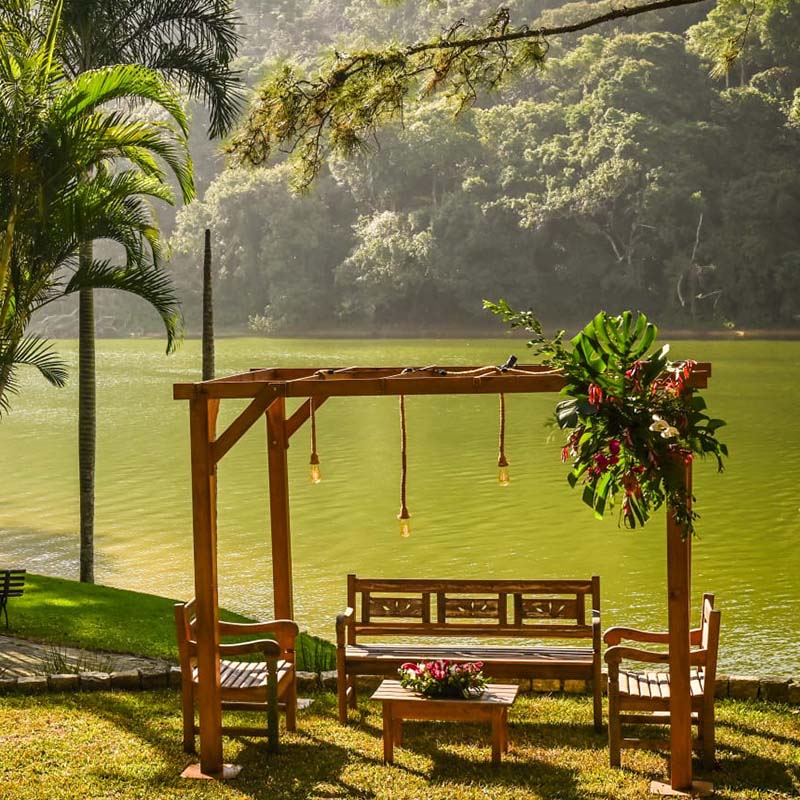 Celebre de forma única com um luau à beira do lago, com ambientação especial, iluminação decorativa e aquele clima mágico ao ar livre.